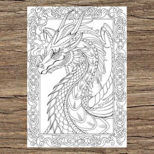 Gorgeous Dragon Printable Adult Coloring Page From Favoreads Etsy Israel